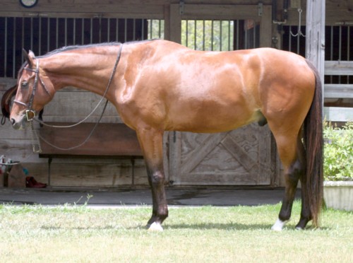 Sold - Gabriel (Gadget / Eleanora xx / Shelter Half xx) 2002, 16+ hands, Dark Brown, Hanoverian/TB gelding. Possesses his sires excellent character and temperament. Very willing to please and absolutely loves attention. Athletic. Uncomplicated. In his first year of showing Gabriel finished in 4th Place 2007 CTHJA in a highly competitive Green Hunter Division. Gabriel's